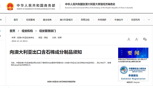 √ 中国商务部新闻-向澳大利亚出口含石棉成分制品须知: